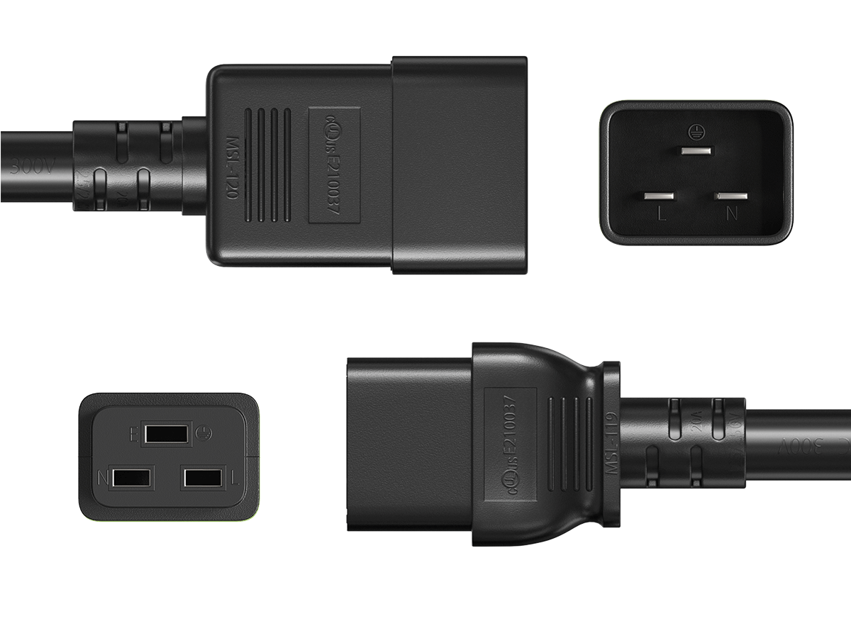 CompuCablePlusUSA IEC 60320 C20 to C19 Heavy Duty Extension Jumper Cord โ 14AWG SJT, 15A/250V, UL Certified, Black, 1/2/3/6/8/10/15 FT (1 FT)