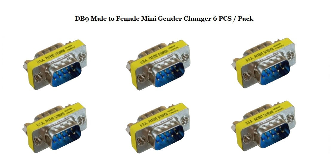 D-Sub Serial Mini Gender Changer Coupler Adapter (Mini Gender Changer, 6 PCS/Pack) (DB9, Male to Female)