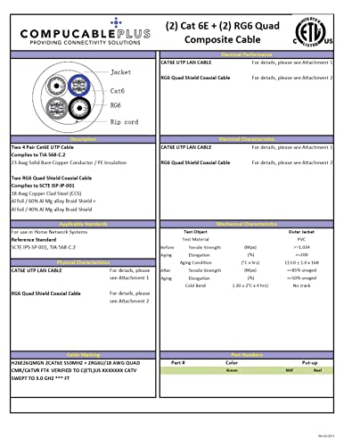 This Multimedia Cable Consists 2 Pieces of CAT.6E UTP 23 AWG 550MHz Ethernet Cables and 2 Pieces of RG-6/U 18 AWG Quad Shield Coaxial Cables. These 4 Pieces of Cables are Wrapped into One PVC Jacket as One Cord. This Multimedia Combination Cable is Great for Smart Home/Office/Conference Room.