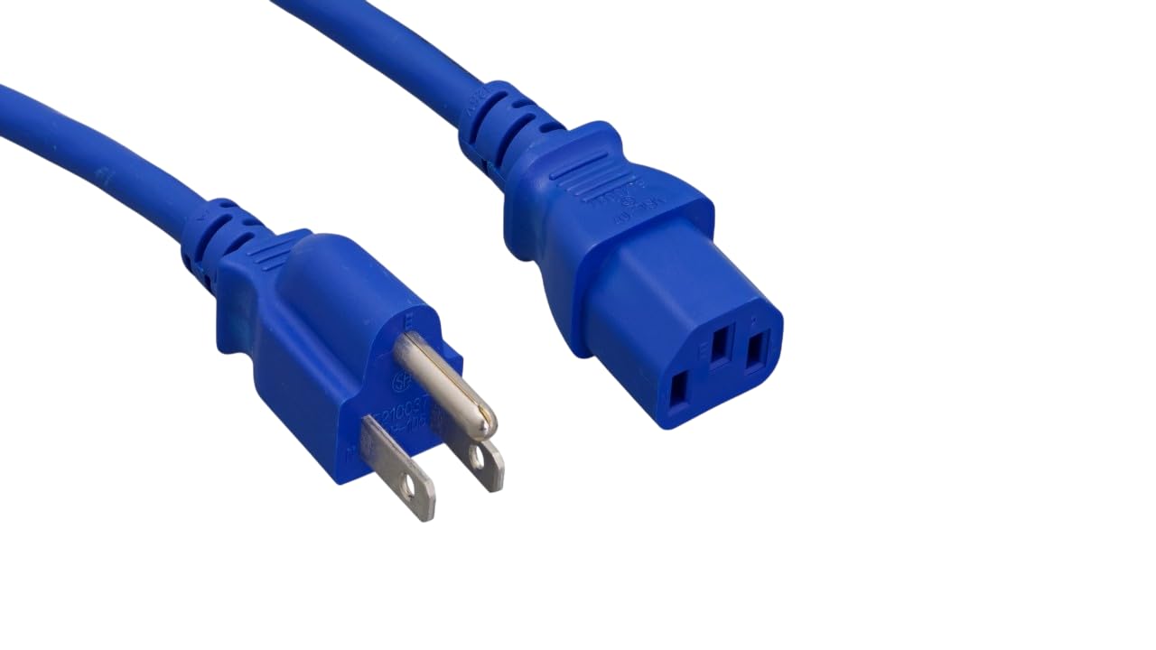 CompuCablePlusUSA NEMA 5-15P to IEC C13 North America Standard Power Cord - 18 AWG SJT, 10A/125V, UL Certified, Blue, 1/2/3/4/6/10 FT (1 FT)