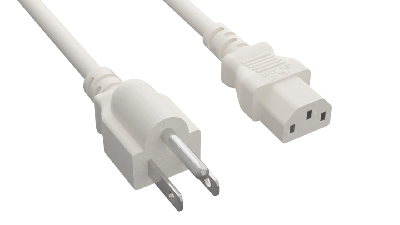 CompuCablePlusUSA NEMA 5-15P to IEC C13 North America Standard Power Cord - 18 AWG SJT, 10A/125V, UL Certified, White, 2/3/6 FT (2 FT)