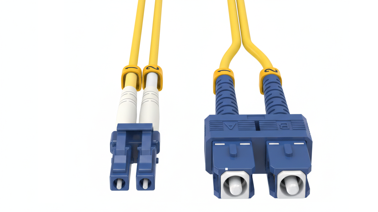 - Precision Connectors: LC to SC Duplex interface with UPC polish, ensuring an insertion loss of ≤ 0.3 dB and return loss of ≥ 55 dB.