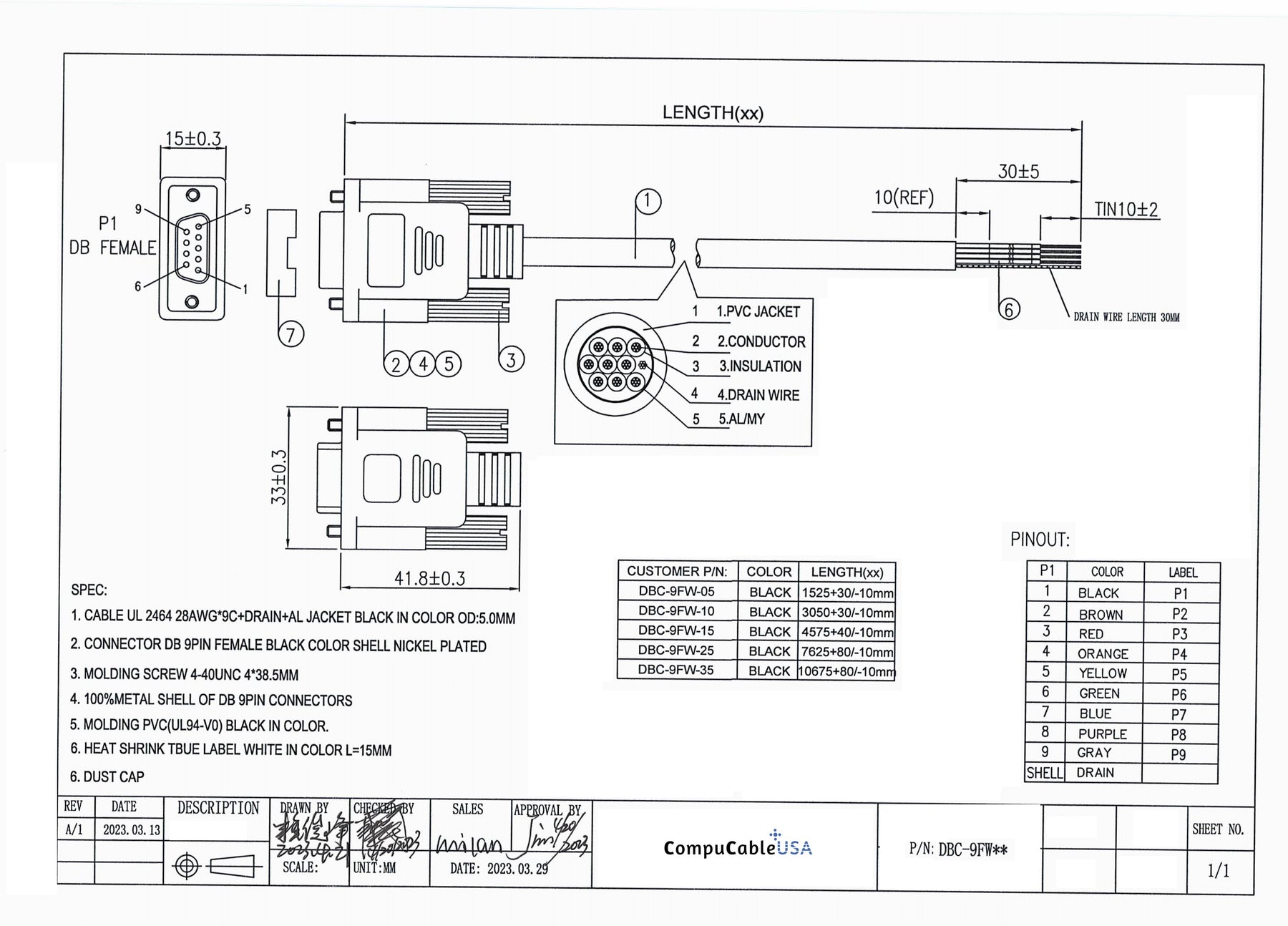 Part Number DBC-9FW-03 (DB9 Female 3 Feet)