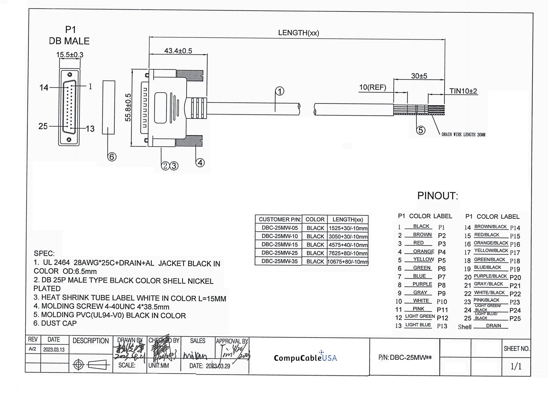 Part Number :?DBC-25MW-05 (DB25 Male 5 Feet)