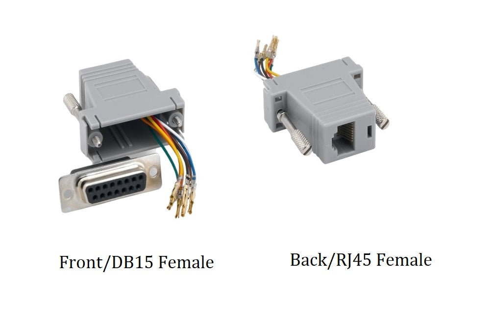 • Converts DB15 Female Serial Ports to RJ45 (8P8C) Female Modular Connectors.