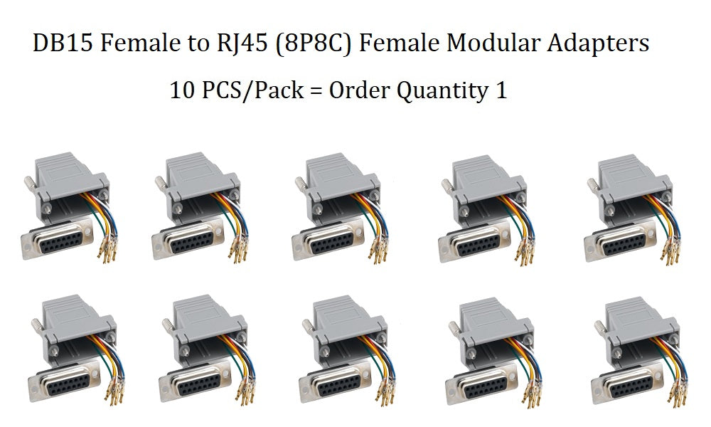 DB15 Female to RJ45 (8P8C) Female Modular Adapter Gray, 10 PCS/Pack