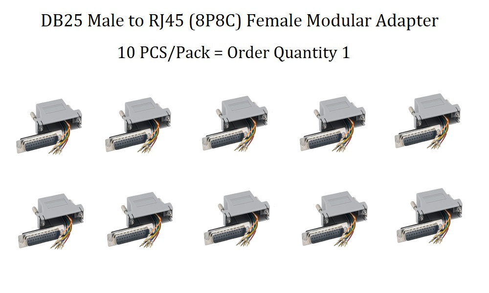CompuCablePlusUSA.com DB25 Male to RJ45 (8P8C) Female Modular Adapter Gray 10 PCS/Pack.