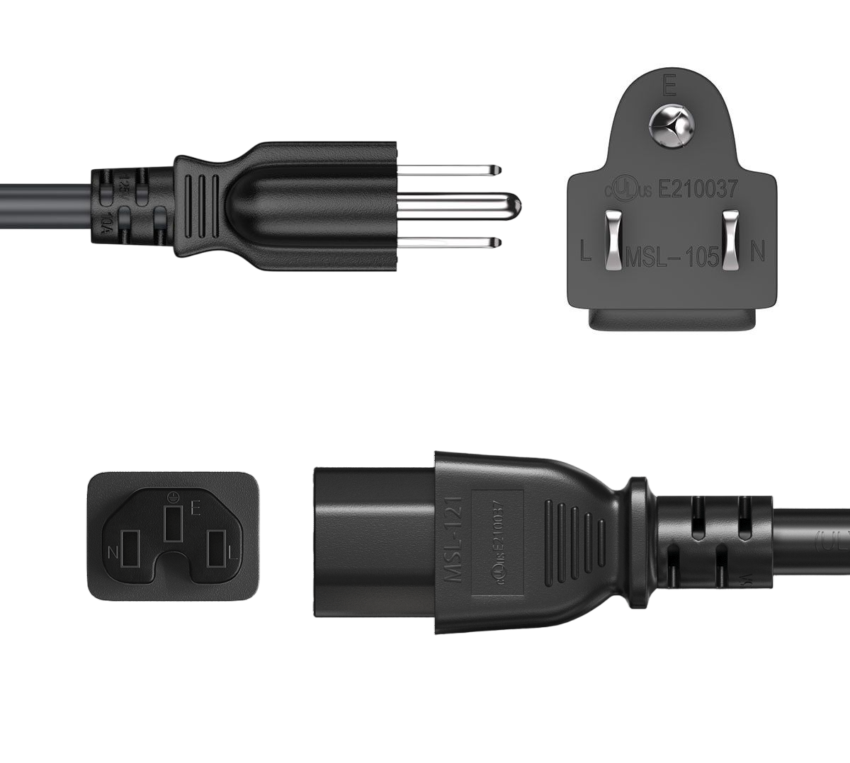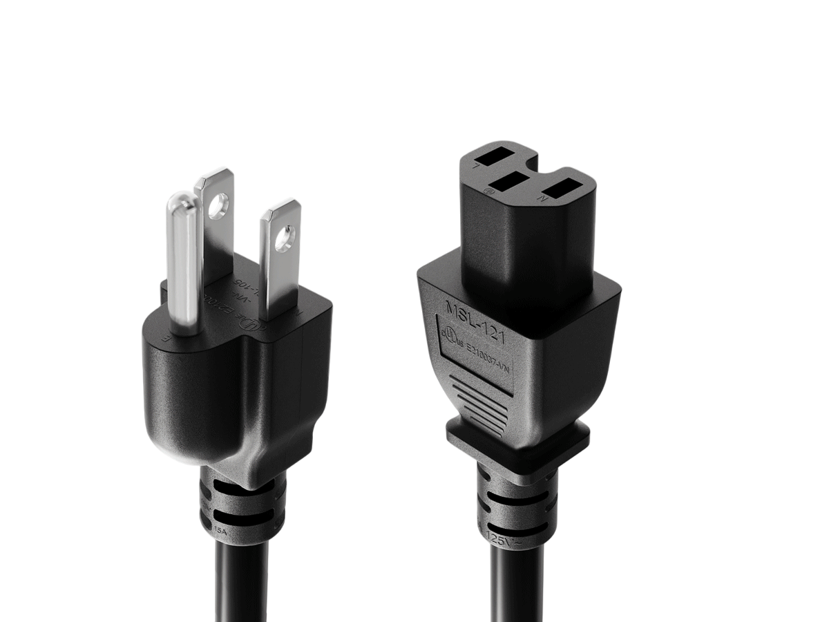 • Universal Connectivity: Features a standard NEMA 5-15P (3-prong North American plug) on one end and an IEC-60320-C15 female connector on the other, ensuring a secure and versatile power connection.