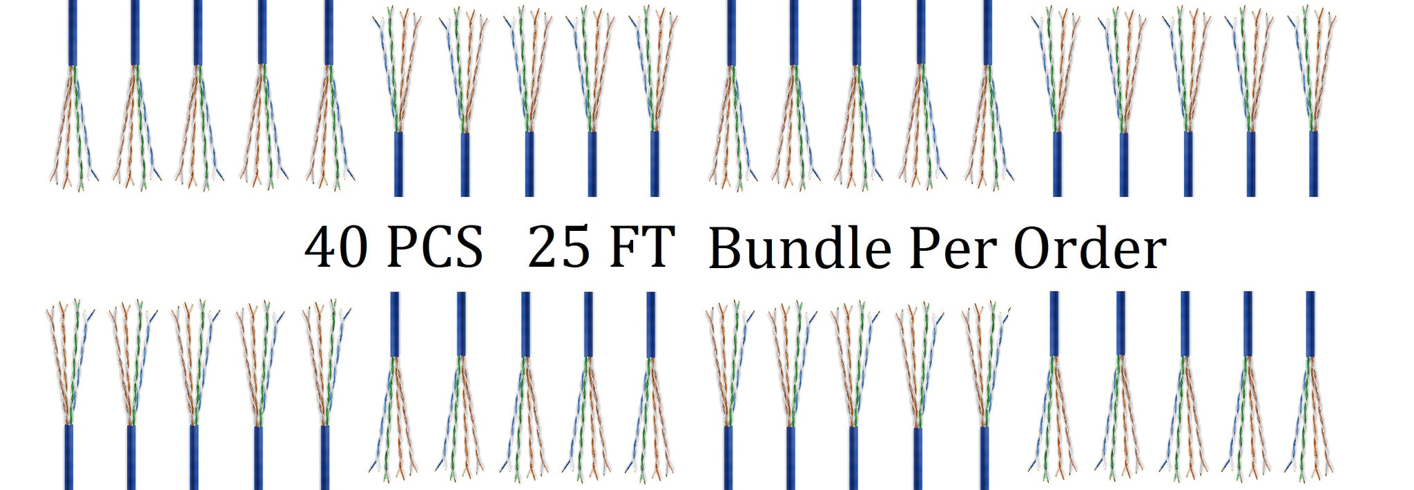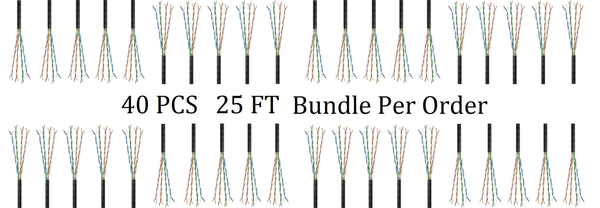 - Pre-Cut Cable Length : 25 FT/ 40 Piece Pack (Total Cable Length 1000 FT)