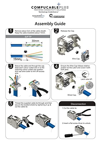 In This Category, We Have CAT.8 RJ45 Jacks Designed Specifically for Solid Cat.8 Cable. The Contacts on the Keystone Jack are Gold Plated. A Wire Alignment Insert Ensures an Efficient Termination Without the Use of Tools, but If You Want to Trim Excess Wire, We Recommend Using a Cable-Cutter. EMI (ElectroMagnetic Interference) is Prevented by Shielding the Connector Housings.