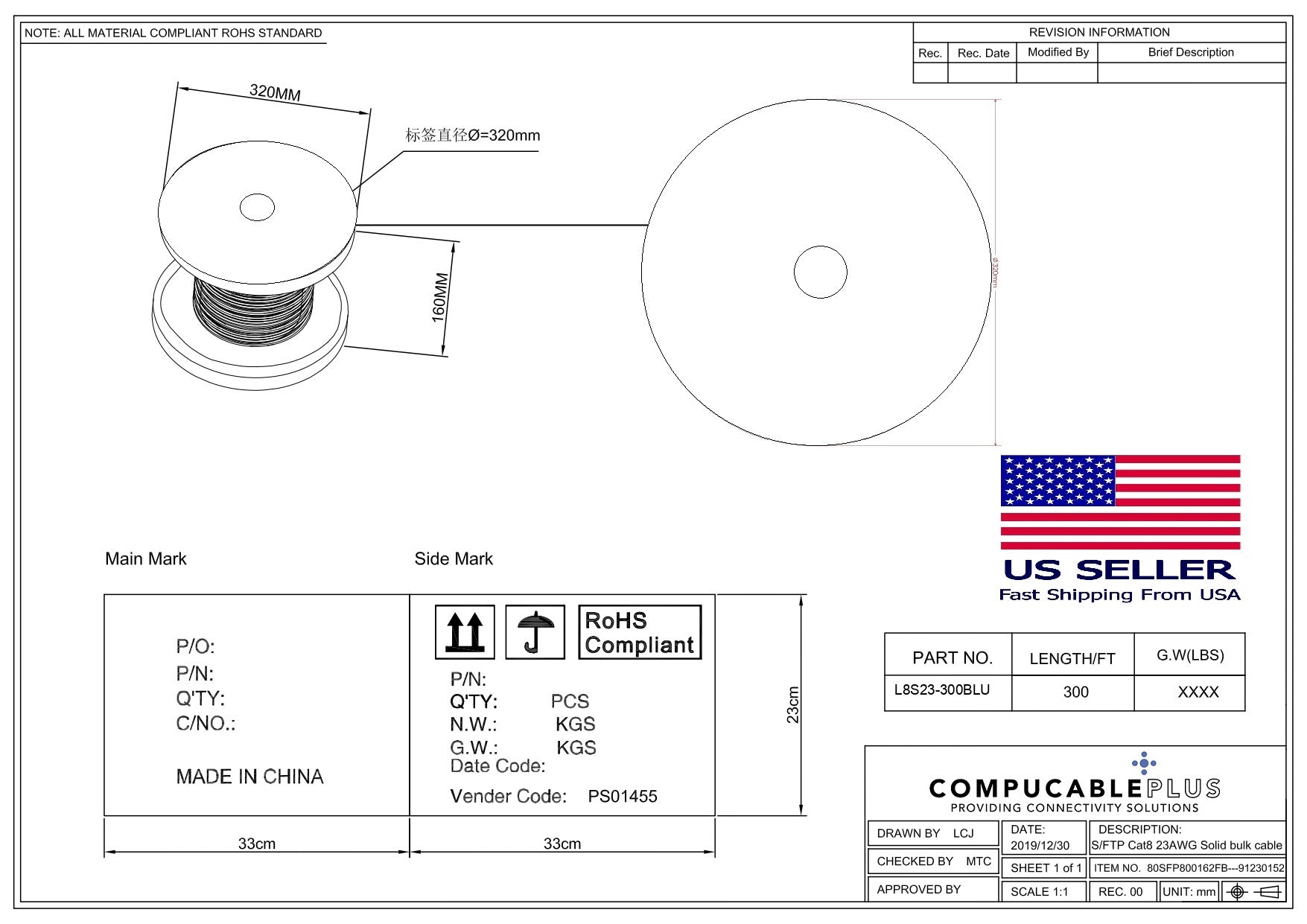 CompuCablePlusUSA.com CAT8 Ethernet Bulk Cable_300 FT & 500 FT Packaging.