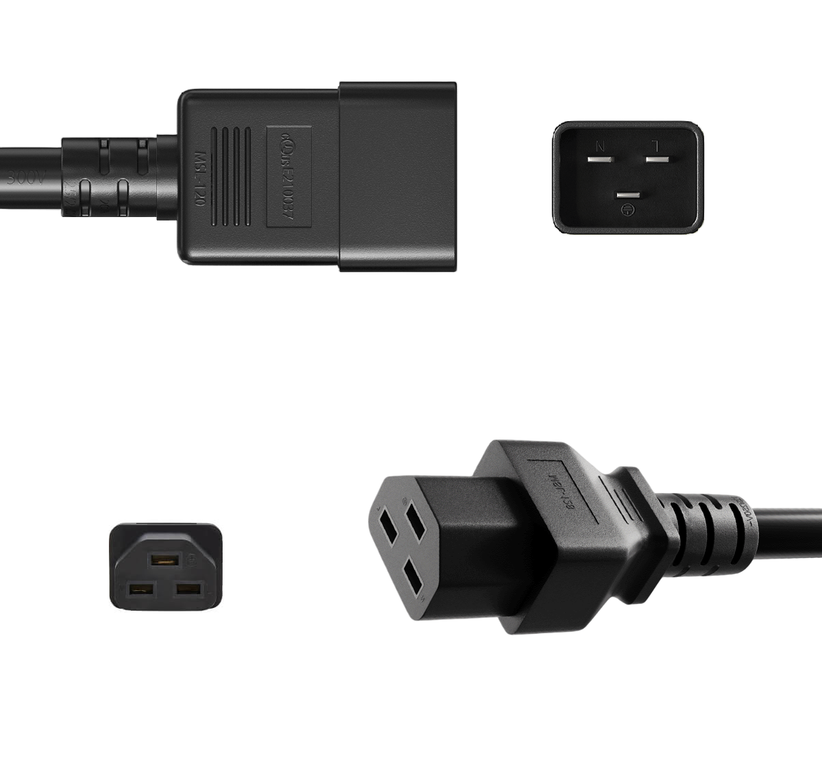 Secure your high-performance server and network infrastructure with the specialized CompuCablePlusUSA IEC-60320-C20 to IEC-60320-C21 Power Cord. Designed specifically as a Data Center Jumper Cord, this heavy-duty cable efficiently connects your C21 receptacle (on a server, switch, or device) to a C20 connector on a Power Distribution Unit (PDU) or Uninterruptible Power Supply (UPS) in a rack environment.