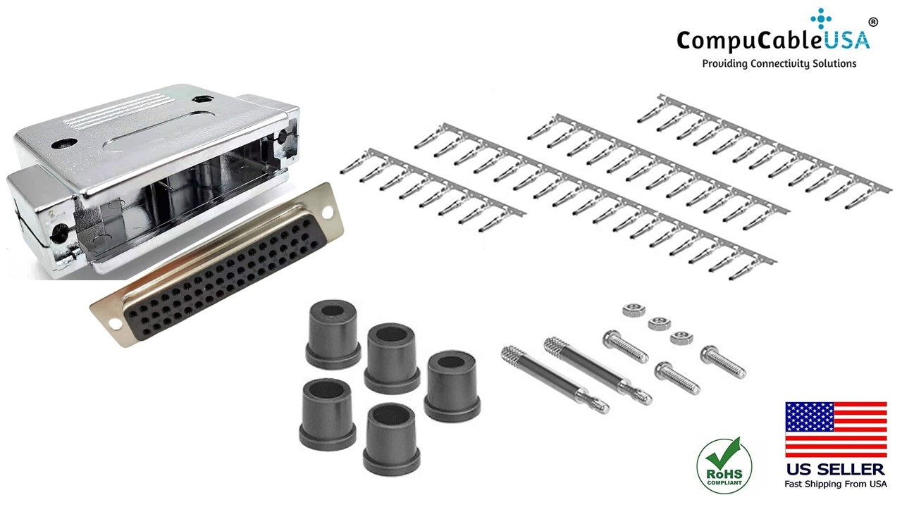 DB25 Crimp Female Connector complete bundle DIY Kit includes connector, hood, female crimp pin, strain relief grommet and screws.