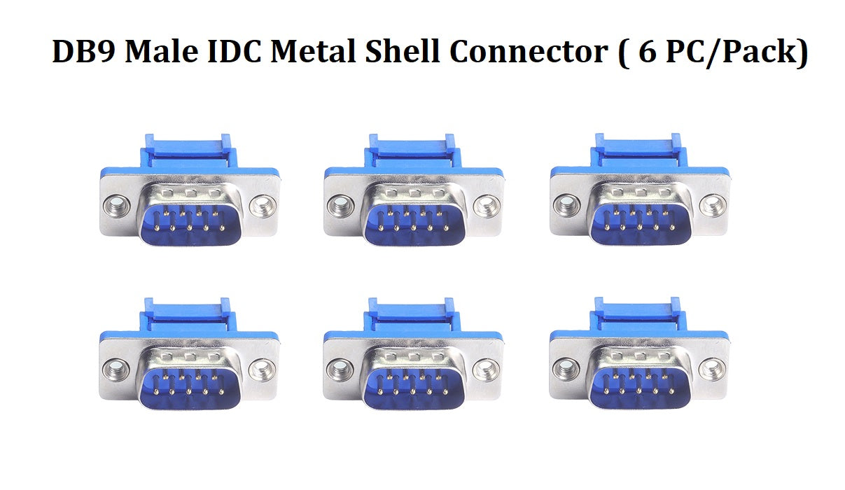 DB9 Male IDC Metal Shell Connector for Serial RS-232 | 9-Pin DE9 Connector | 6 PC/Pack (Male/6PCS/Pack)